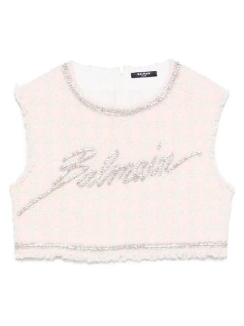 Balmain Women White Button Embellished Logo Printed Tank Top/Cami