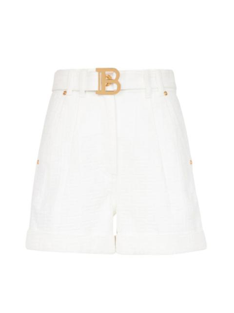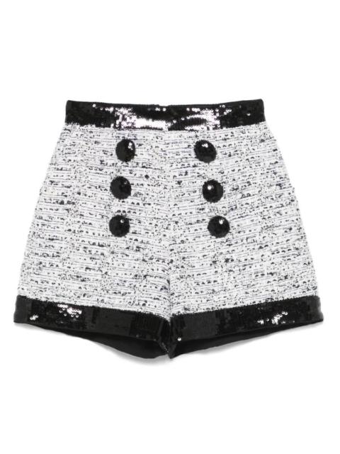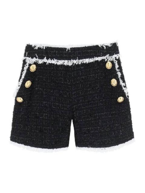 Balmain Women Green Shorts High Waist With Pinces And Fringed Hem In Tweed Woman