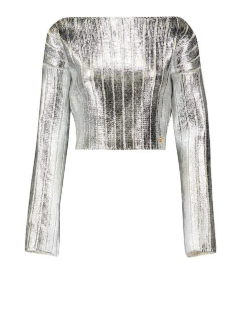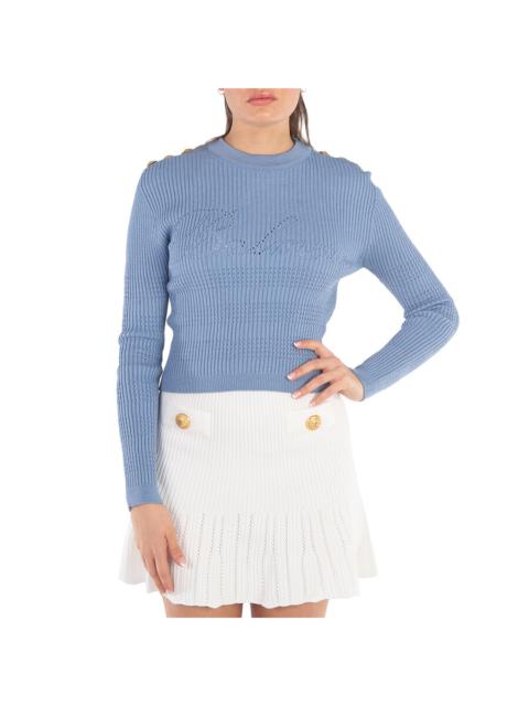 Balmain Women "Balmain Paris" Cropped Roundneck Sweater