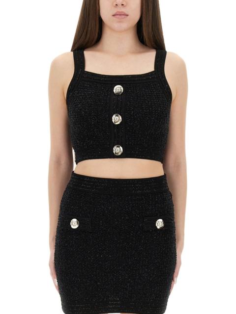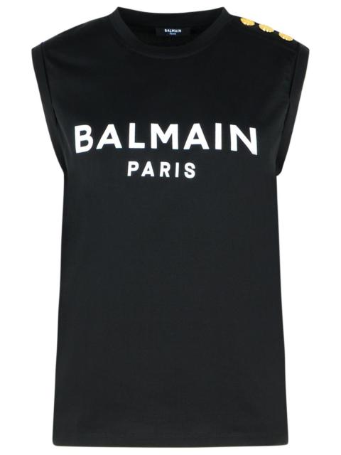 Balmain Logo Print Button Embellished Tank top