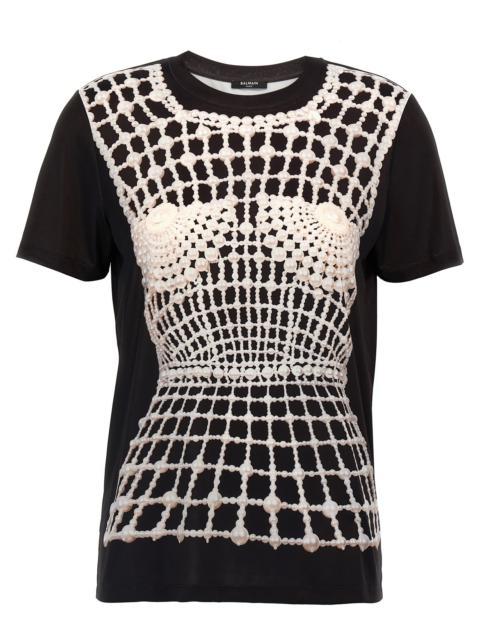 Balmain Women Pearls Chains Details Partial Face T-Shirt