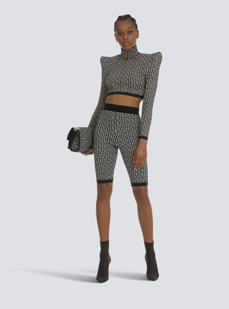 Bicolor jacquard knit shorts with Balmain monogram