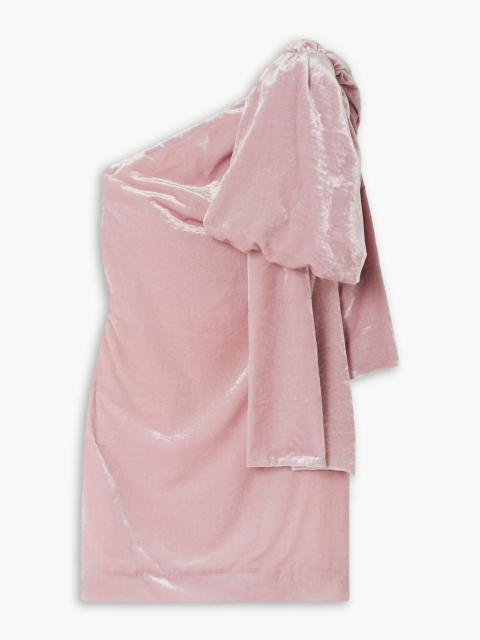Josselin one-shoulder bow-detailed velvet mini dress