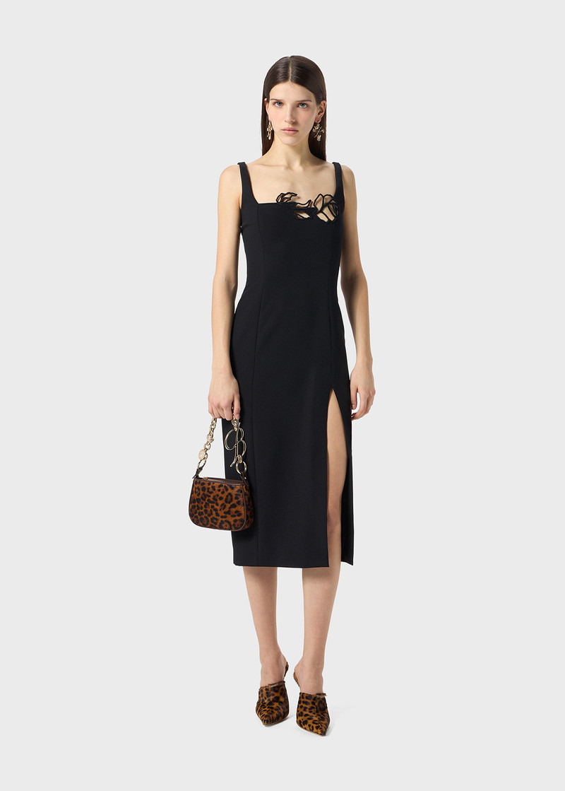 COMPACT JERSEY DRESS WITH CUT-OUT AND PIN DECORATION
