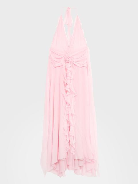 SILK GEORGETTE DRESS WITH 3D ROSE AND RUFFLES