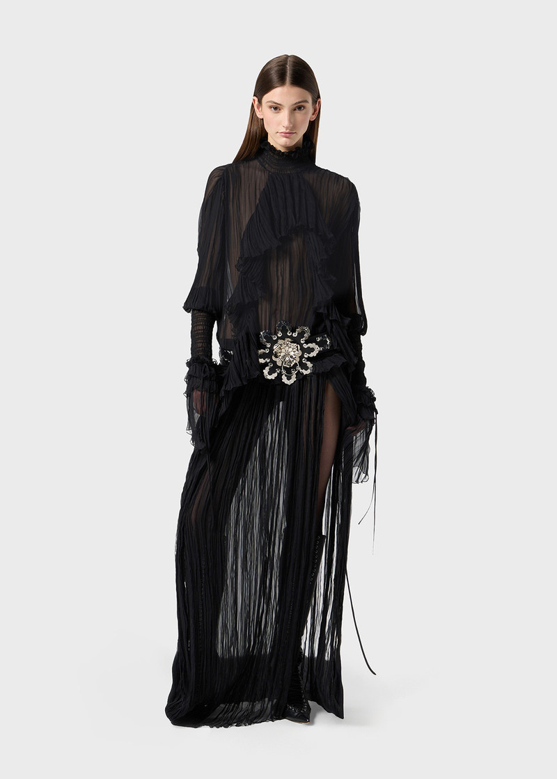 LONG PLEATED SILK CHIFFON DRESS WITH SPLIT