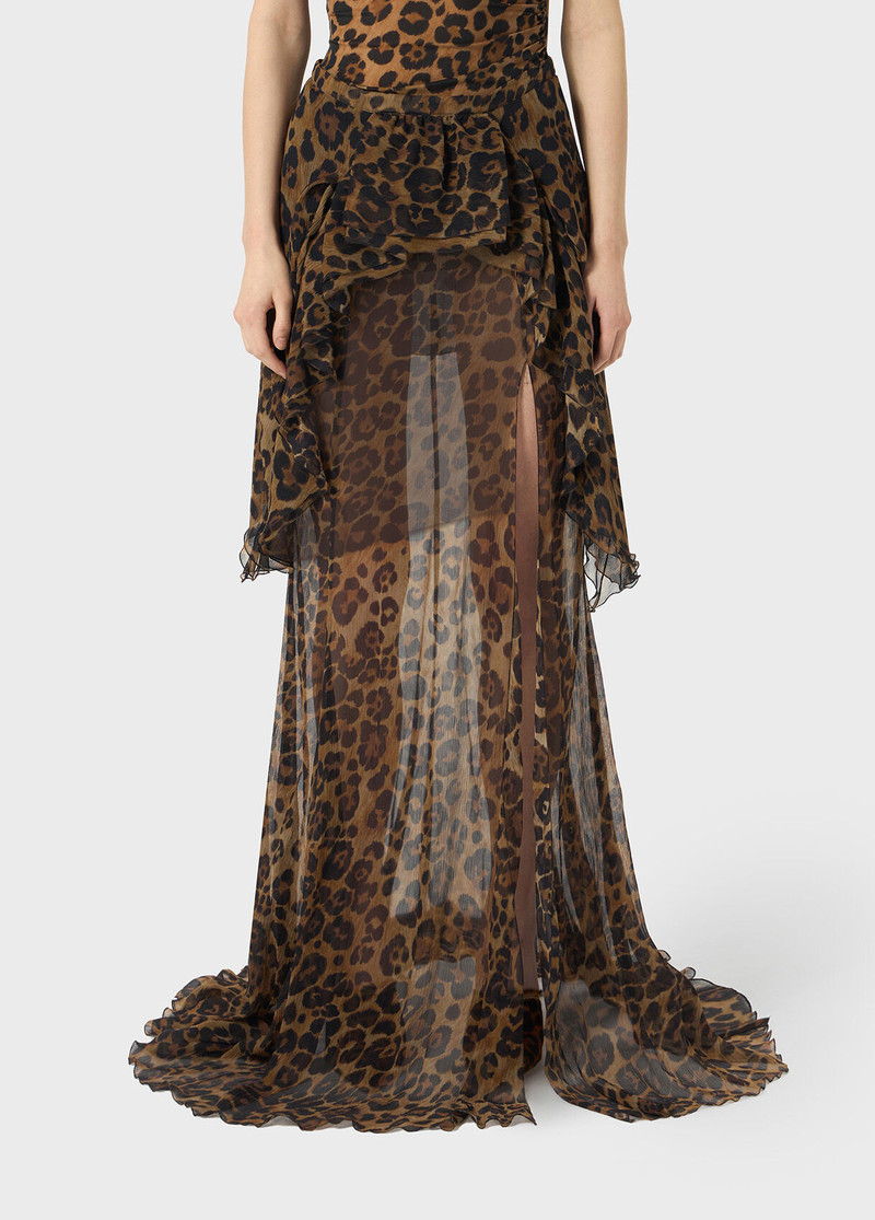- BlumarineSILK CHIFFON PRINTED SKIRT WITH RUFFLES