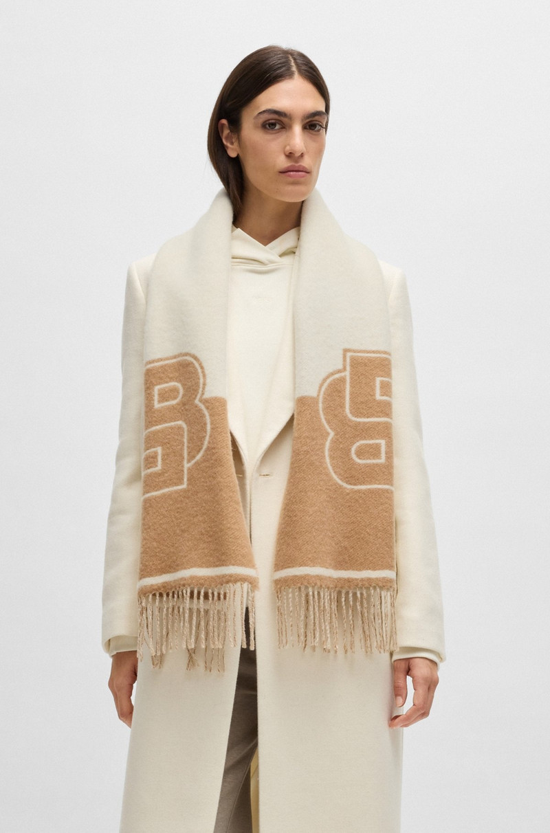 - BOSSWOOL-BLEND SCARF WITH DOUBLE B MONOGRAM JACQUARD