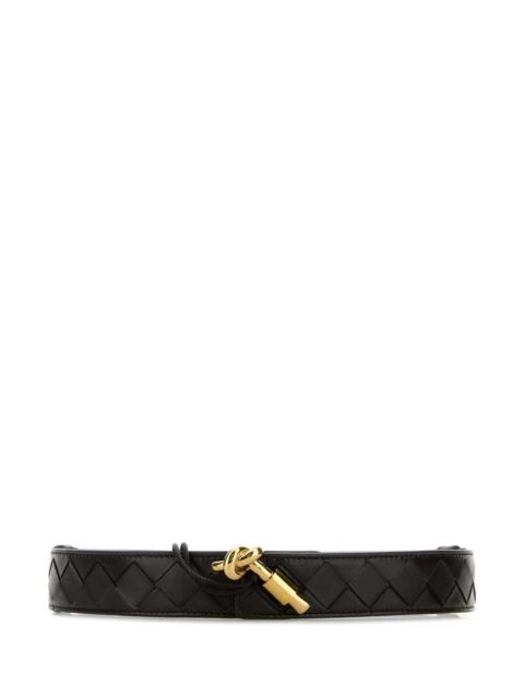 Bottega Veneta Women Black Belt With All-Over Intreccio Motif In Leather Woman