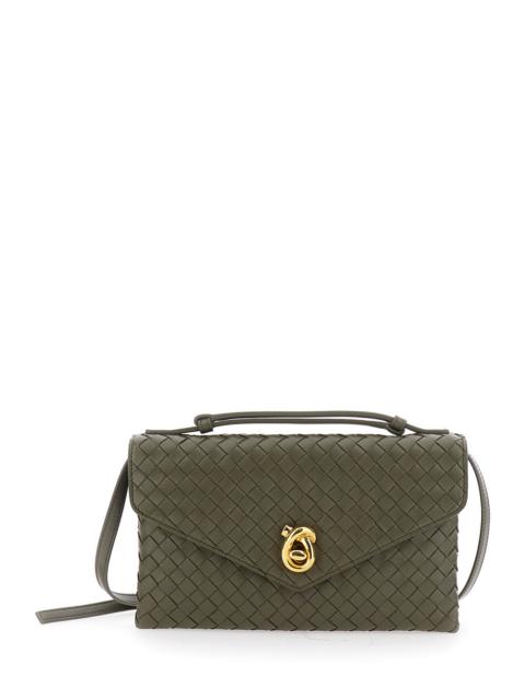Bottega Veneta Women 'Knot Lock' Green Crossbody Bag With Intreccio Motif And Metal Knot Closure In
