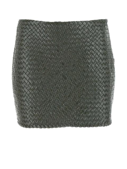 Bottega Veneta Women Army Green Leather Mini Skirt