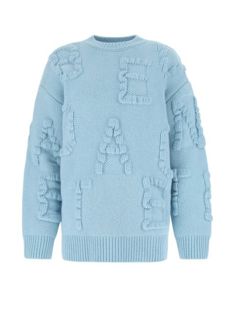 Bottega Veneta Women Light Blue Stretch Wool Blend Shetland Alphabet Oversize Sweater