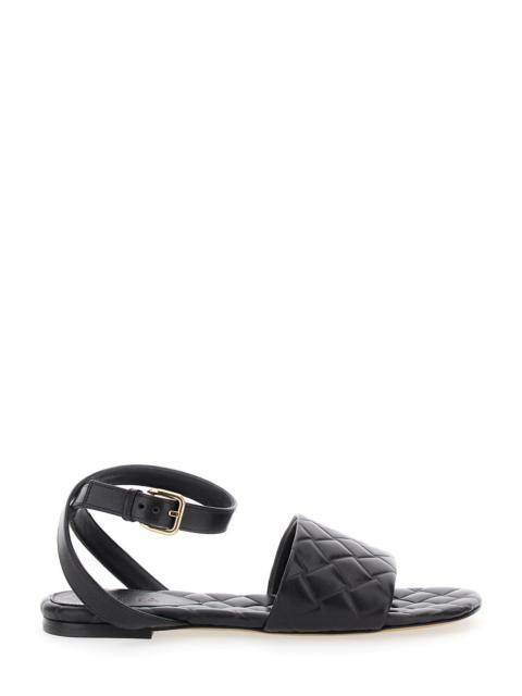 Bottega Veneta Women 'Amy' Black Flat Sandals With Intreccio Motif In Leather Woman