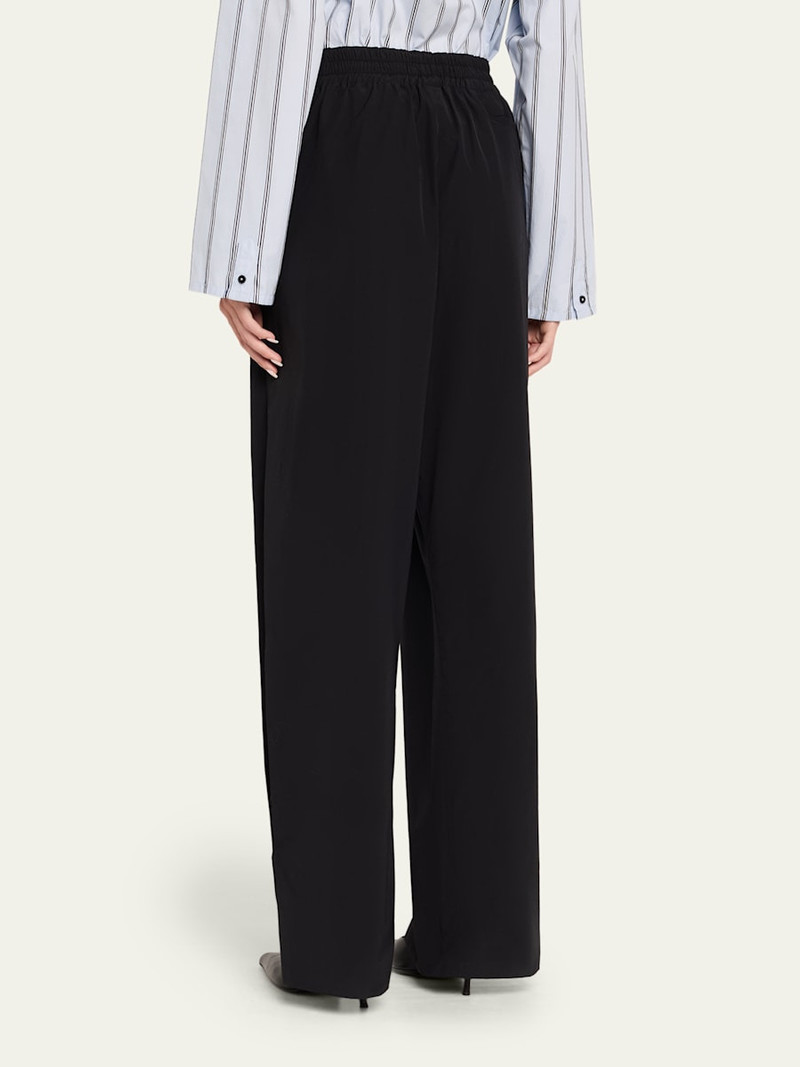 The Irving Relaxed Wool-Silk Straight-Leg Pants black