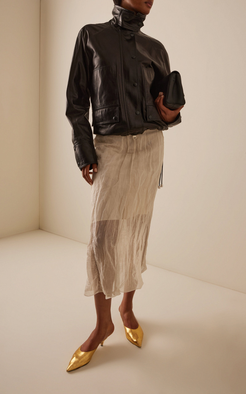 - BRANDON MAXWELLThe Gail Crinkled Leather Midi Pencil Skirt gold