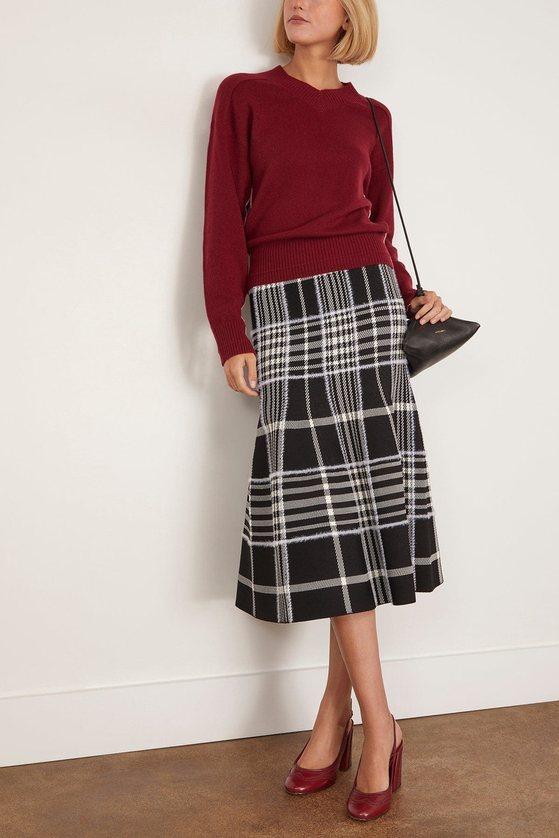 - BRANDON MAXWELLThe Rory Flare Knit Skirt in Black Plaid