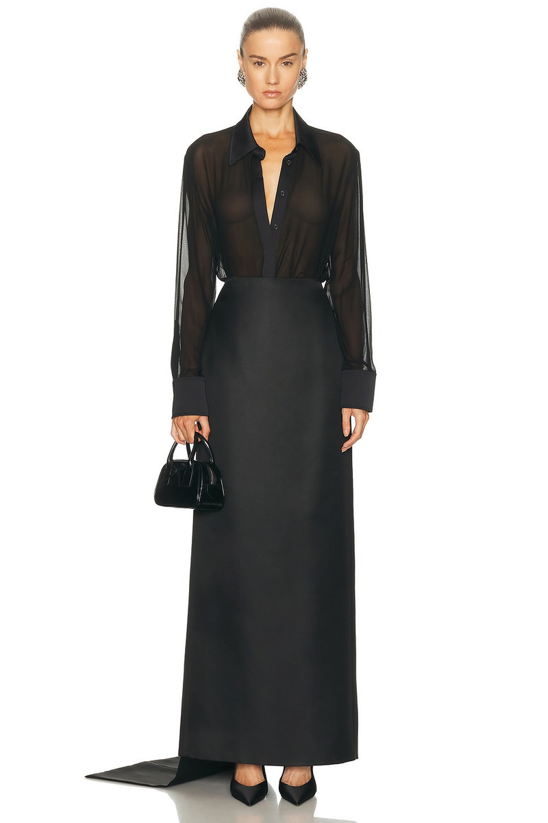 The James Low-Rise Metallic Organza Midi Skirt tan