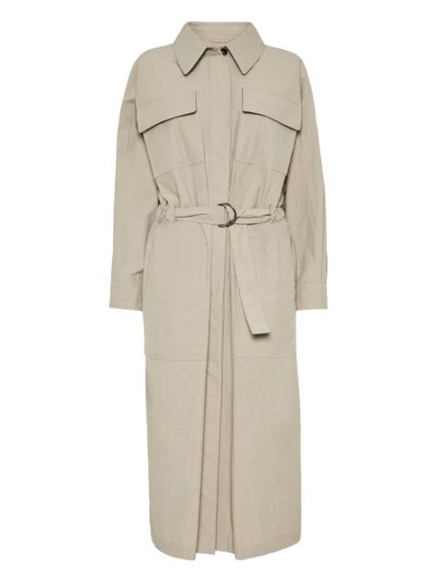 Brunello Cucinelli Women Wool And Cashmere Diagonal Mélange Coat With Belt And Necklace
