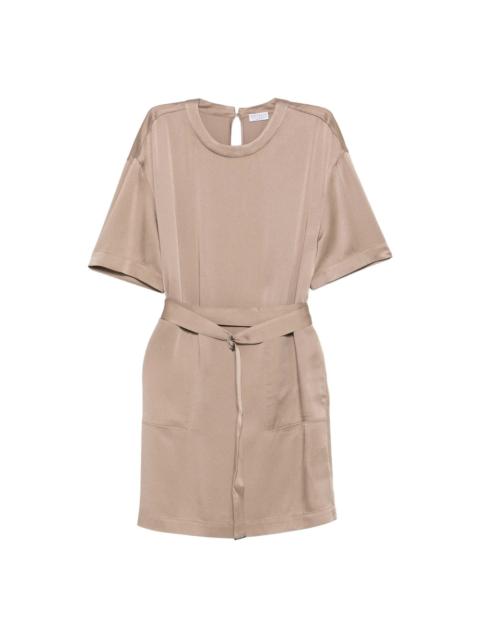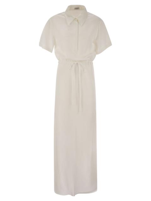 Brunello Cucinelli Women Techno Cotton Poplin Dress With Belt And Precious Shoulder Detail