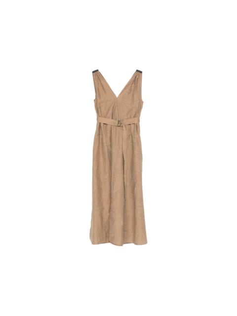 Brunello Cucinelli Women Long Sleeveless Cotton Dress With Belt At The Waist
