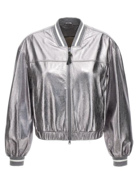 Brunello Cucinelli Women Laminated Leather Bomber Jacket