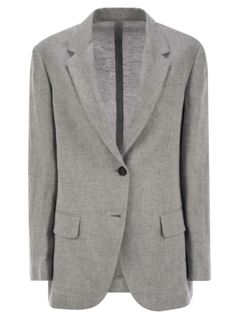 Brunello Cucinelli Women Grey Jacket With Notched Revers And All-Over Striped Motif In Linen Blend W