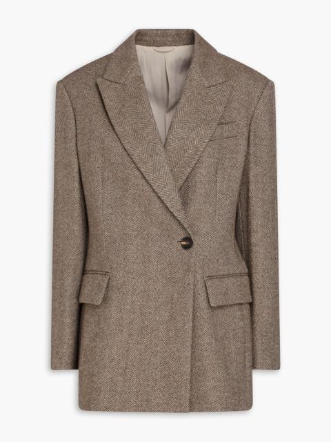 Double-breasted herringbone wool-blend felt blazer