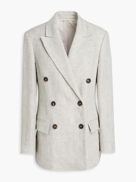 Double-breasted linen-blend blazer