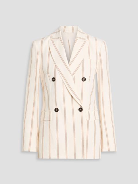 Double-breasted striped linen and cotton-blend blazer