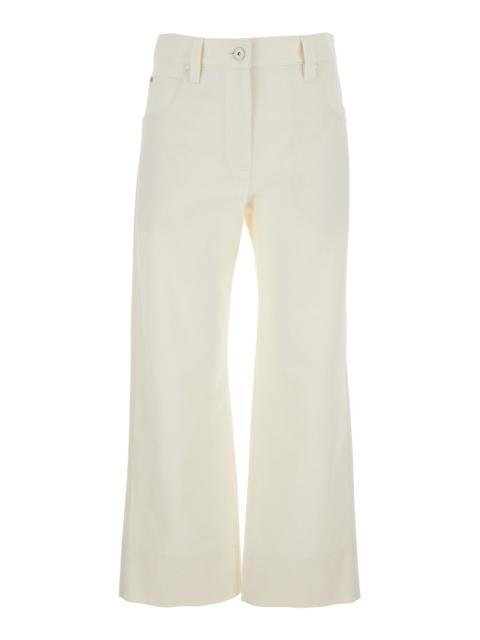 Brunello Cucinelli Women White Jeans With Wide Leg And Monil Detail On The Rear In Denim Woman