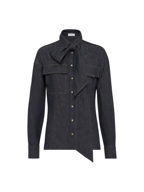Brunello Cucinelli Crispy Silk Top With Lavallière And Monili