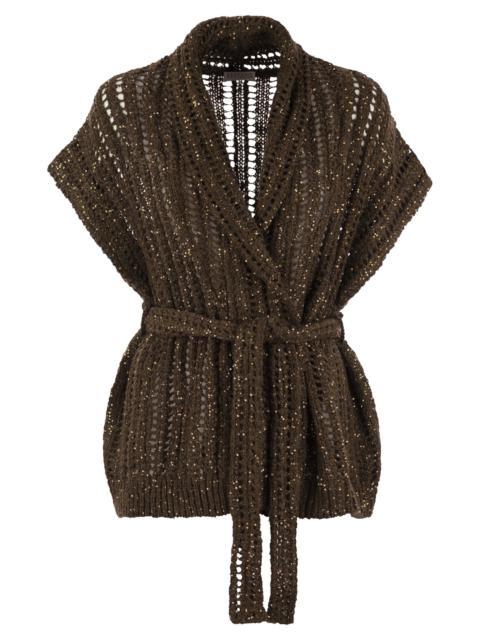 Brunello Cucinelli Women Dazzling Silk And Linen Perforated Rib Cardigan