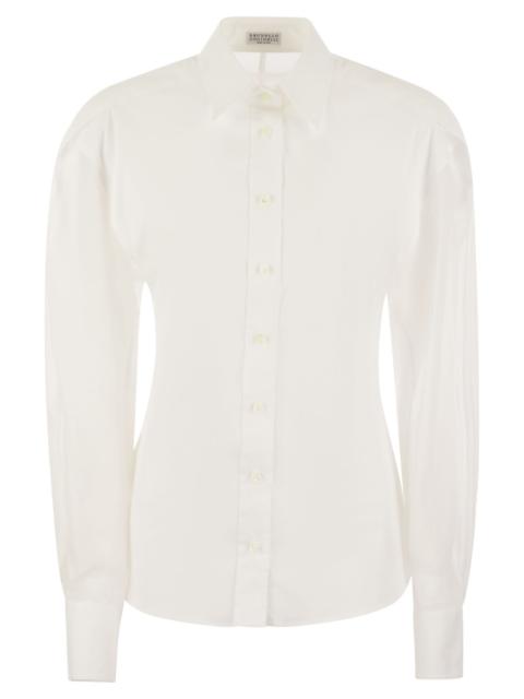 Brunello Cucinelli Women Stretch Cotton Poplin Shirt With Cotton Organza Sleeves And Necklace