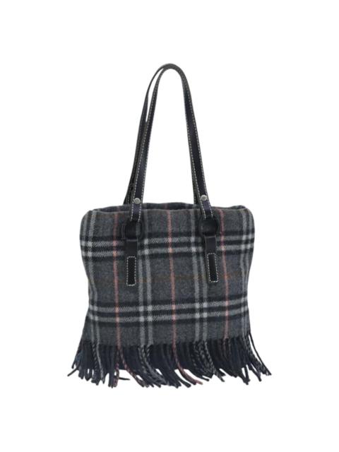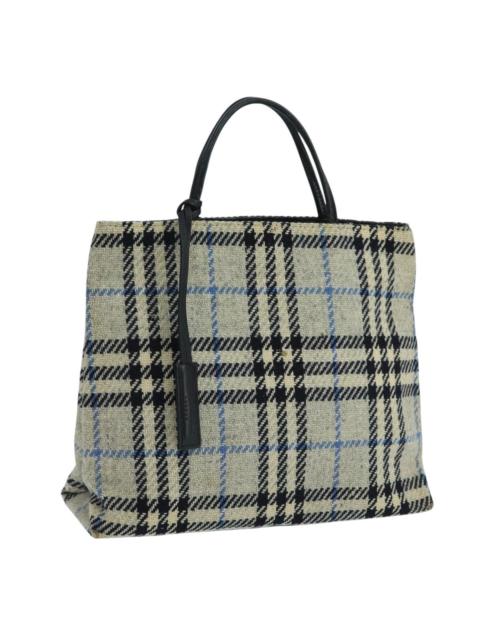 Burberry Nova Check Scarf Style Blue Label Hand Bag Wool Gray Silver