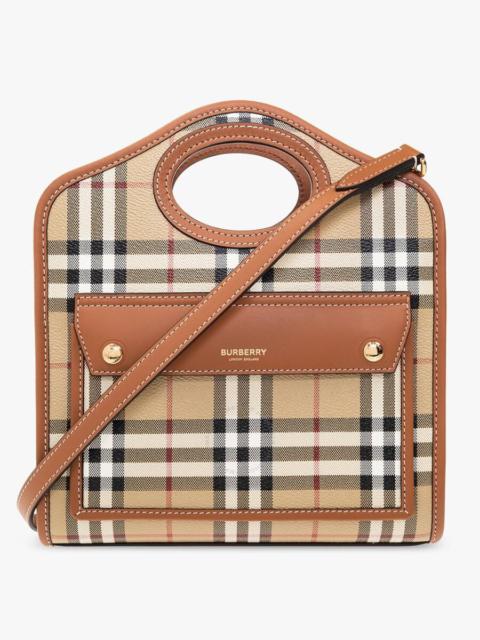 Burberry Ladies Briar Brown Check And Leather Mini Pocket Bag