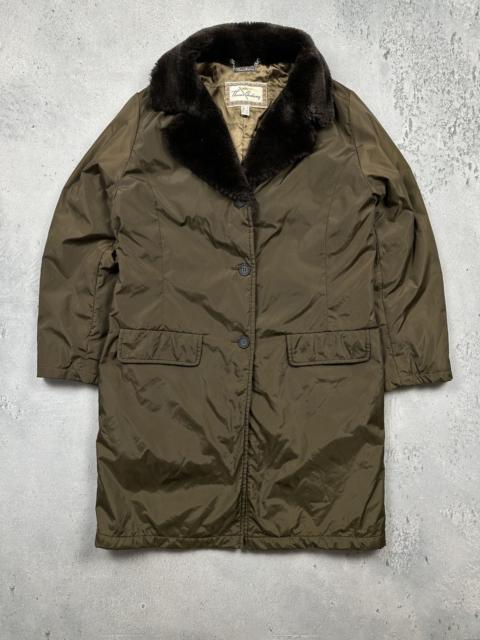 Vintage Thomas Burberry 80s Faux Fur Collar Long Padded Coat