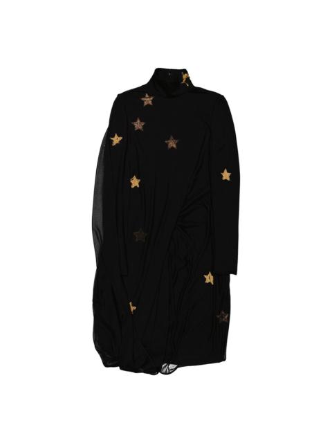 Burberry Black Star Motif Gathered Silk Viscose Dress
