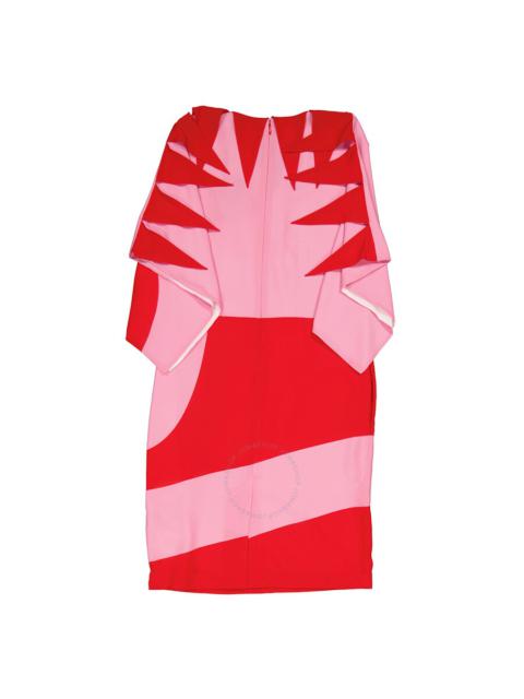 Burberry Ladies Primrose Pink Geometric Print Silk Crepe De Chine Cape Sleeve Dress