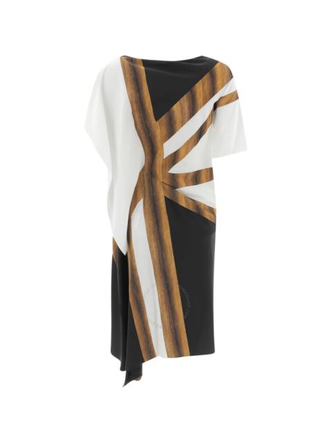 Burberry Flag Intarsia Asymmetric Silk Dress In Black