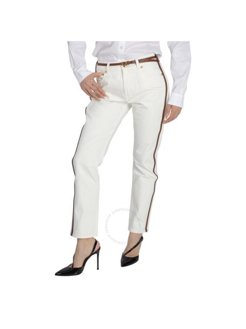 Burberry Ladies Off White Straight Fit Leather Harness Detail Jeans
