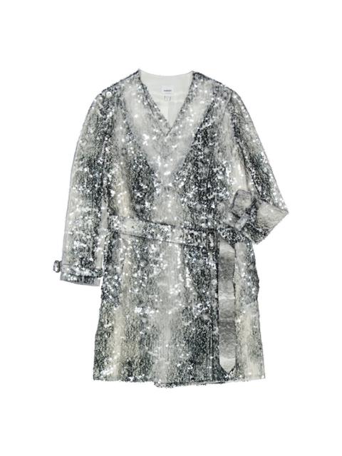 Burberry Monochrome Sequinned Animal Print Belted Trench Dress