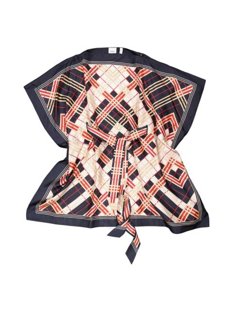 Burberry Abstract Check Print Silk Belted Cape