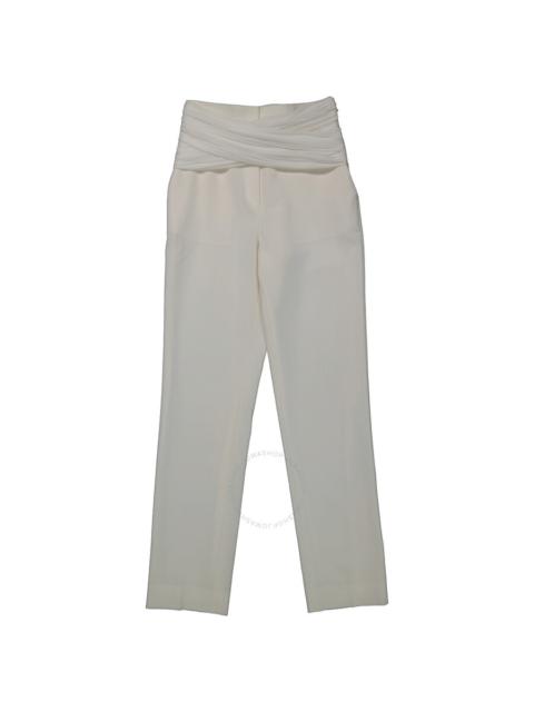 Burberry Ladies Optic White Sash Detail Technical Wool Tailored Trousers