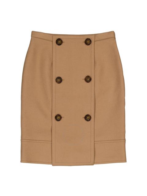 Burberry Camel Wool Cashmere Button Panel Detail A-line Skirt