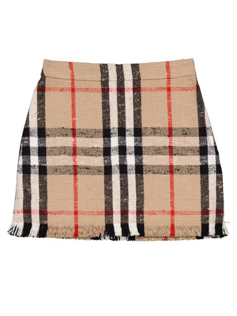 Burberry Vintage Check Frayed-Edge Wool Skirt