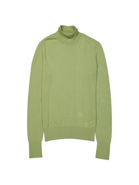 Burberry Ladies Mist Green Monogram-Embroidered Knitted Jumper