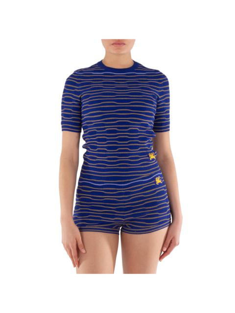 Burberry Brown Checkered Knit Short-Sleeve Top