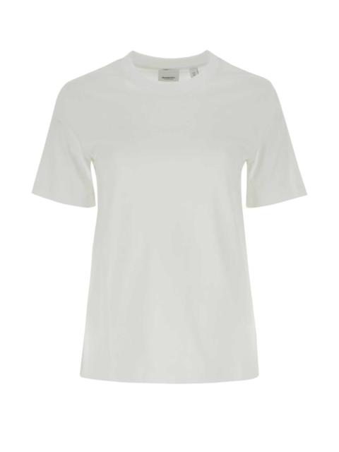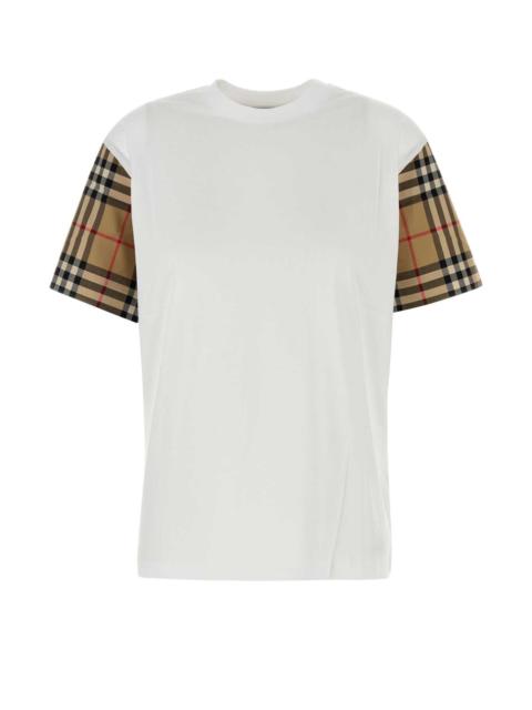 Burberry Women White Crewneck T-Shirt With Check Pocket In Cotton Woman