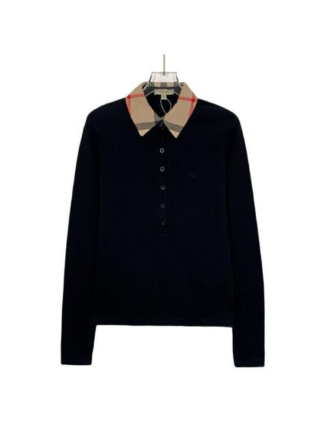 Burberry Long Sleeve Polo Shirt With Nova Check Collar Black Cotton Womens