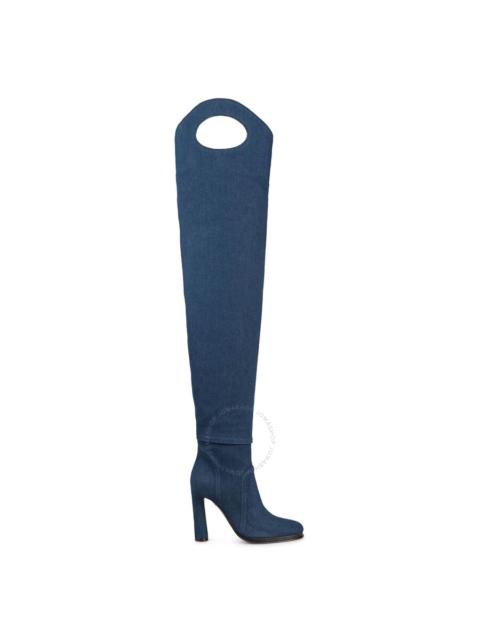 Burberry Ladies Shoreditch Denim Blue Porthole Detail Over-The-Knee Boots